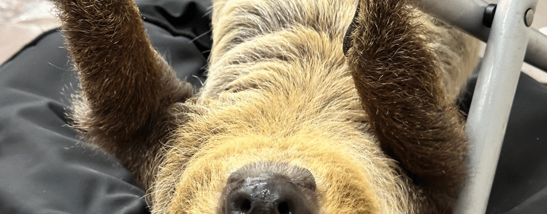 When a sloth baby is born, it remains attached to the mother for roughly six months. The mother clings to the tree branch, and the baby clings to mom’s thick fur. This embracing posture is something we work on at Thrive, often with the use of an exercise ball, to assist with the further integration of our Moro reflex.